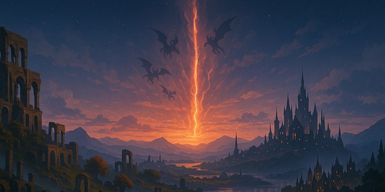 When their work was finished, the Grand Architects stood together in stillness. Luminaria gleamed with balance and beauty, its skies rich with starlight and its lands brimming with promise. Yet even as they gazed with pride upon their masterpiece, the cosmos stirred beyond their reach. From the far reaches of the void, a terrible convergence approached. It would fall like fire from the heavens and reshape the world forever.